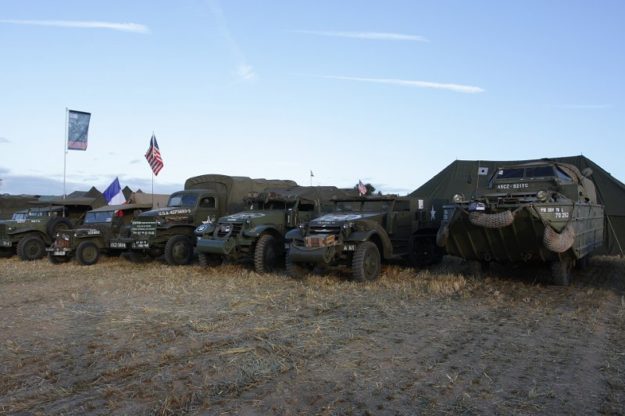 Pas de Pacific cette année pour l’UNIVEM à Souchez, mais pas question de voyager léger pour autant : GMC DUKW, deux Half-Track, un GMC, un Dodge et quelques Jeep étaient du voyage !