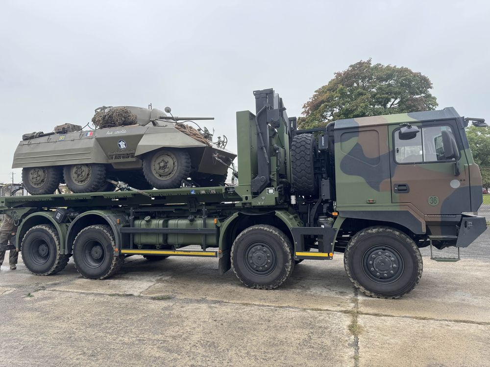 L’Univem a été invité à participer à la cérémonie de l’Etendard évadé au 2ème Dragon de Saumur avec notre automitrailleuse Ford M8. Insolite, la M8 a été transportée sur place par l’Armée sur un PPLOG !