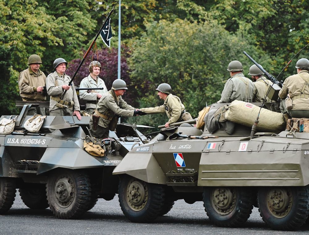 Une jolie sélection de matériel d’époque ainsi que moderne était présente. Ce fût également l’occasion de recréer la célèbre photo historique de jonction des différentes armées à Autun le 13 septembre 1944, où des unités du 2e Régiment de Dragons côté français avaient rencontré des éléments de reconnaissance de la 6e DB du côté américain.